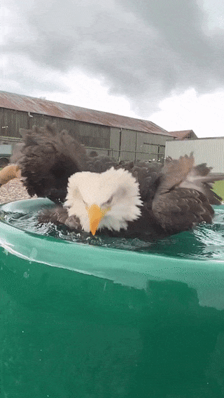 Gif of an Eagle bathing in a tub of water