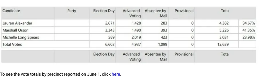 The winner of the May 24th machine count was Marshall Orson — the hand count reduced his total by 1,298 votes and now he’s in third place. Orson made a very telling statement after the hand count results were announced as well.