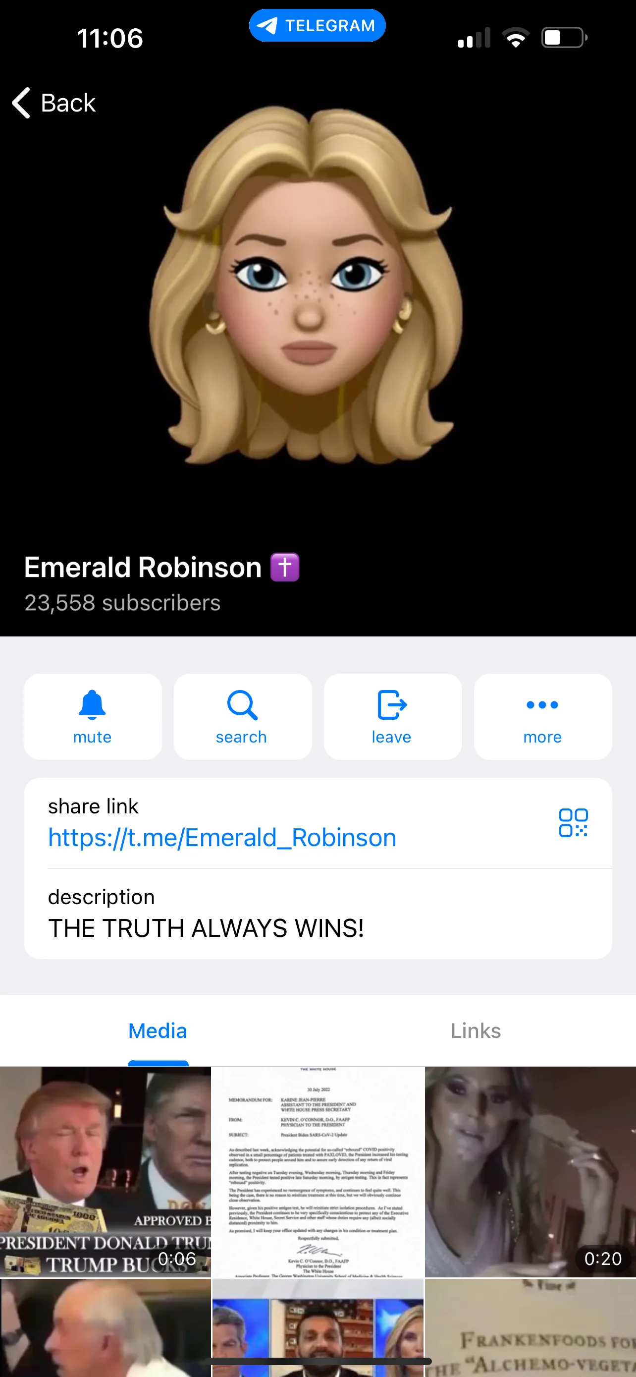 My lawyers have reached out to the “Trump bucks” people as well — and, suddenly, my face disappeared recently from the fake Emerald Robinson account on Telegram. It was replaced with a generic cartoon image.