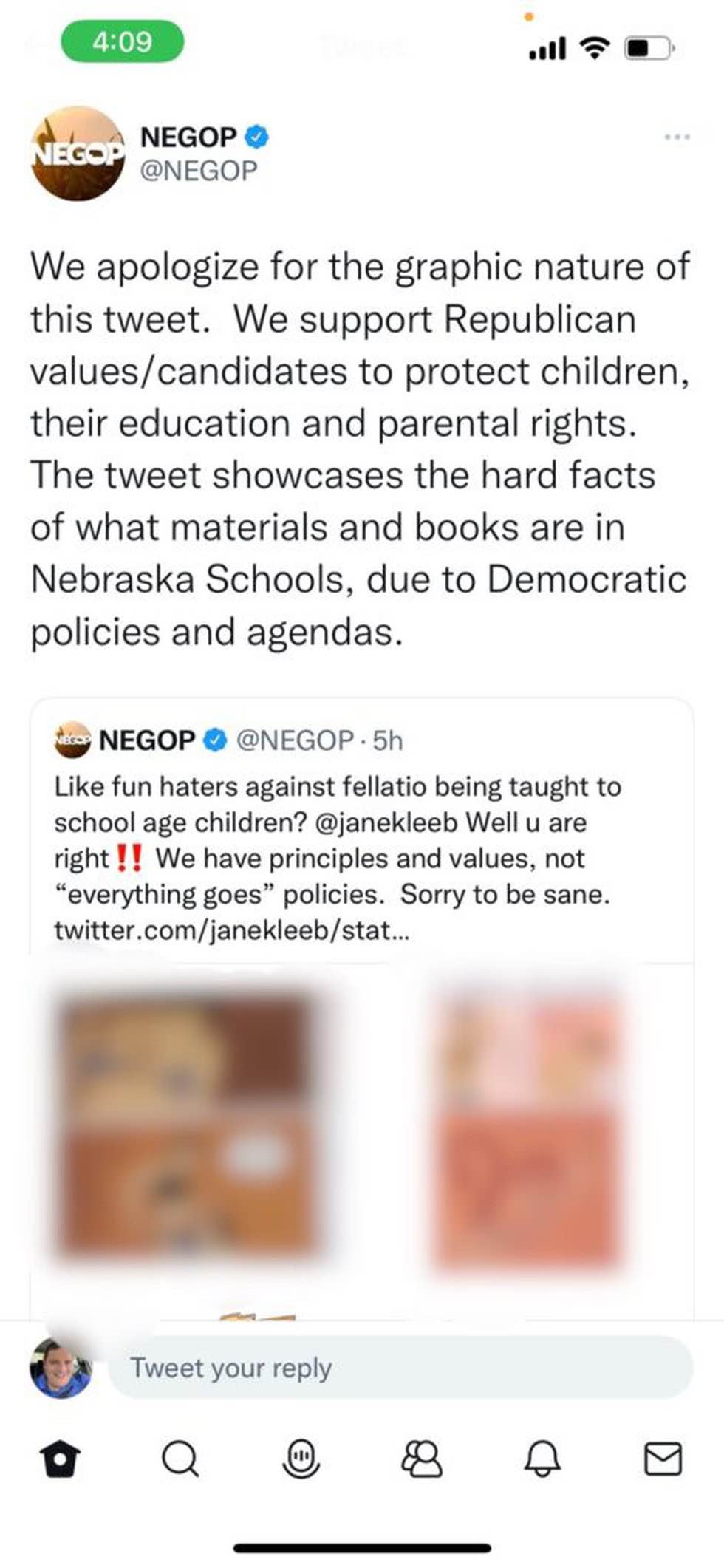 And Democrat Deb Neary, a State Board of Education member said, the uproar involving the tweets: “risks hurting some of our more vulnerable student populations. I am quite certain that there is no school administrator, no policy maker, no librarian, no educator, no Democrat, or no parent in NE, that is intentionally promoting the use of inappropriate materials in our schools…[but]