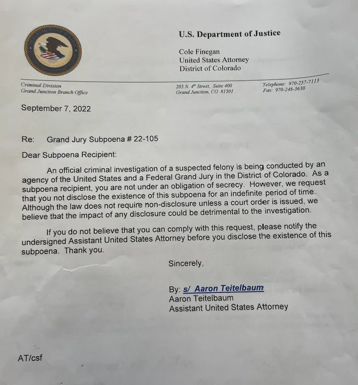 ‘We request that you not disclose the existence of this subpoena for an indefinite period of time.”