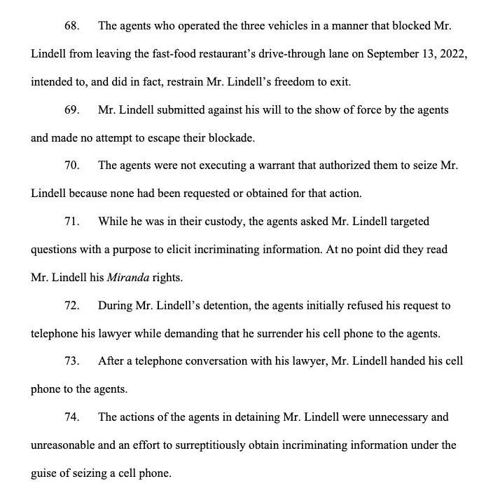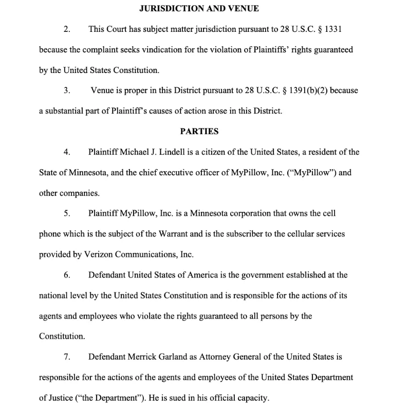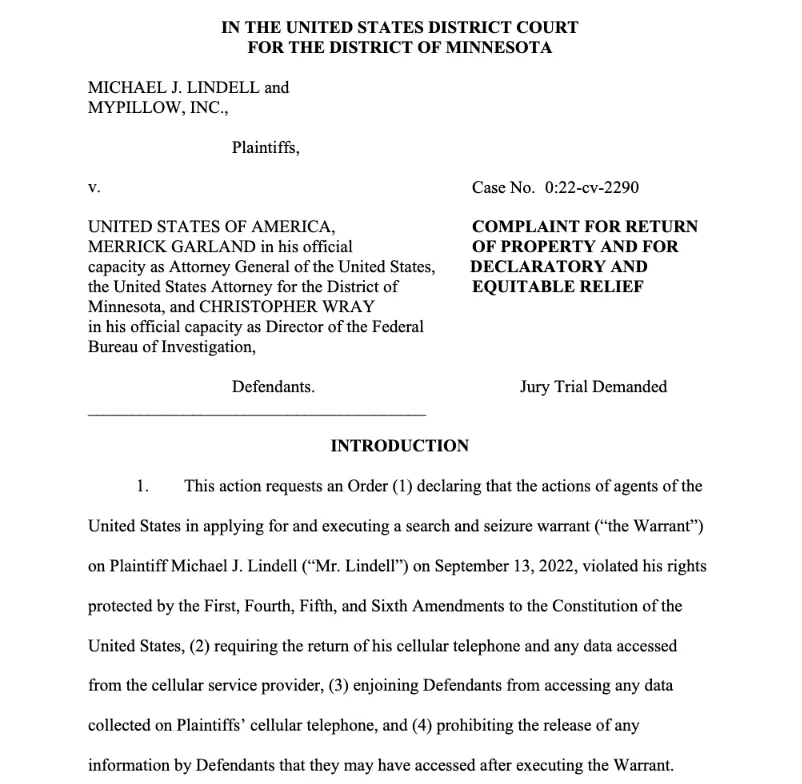 A copy of the warrant was filed around midday on Wednesday by Lindell’s attorneys as an attachment to a lawsuit filed the night before in U.S. District Court for the District of Minnesota. The attachment was curiously not submitted contemporaneously with the original filing.