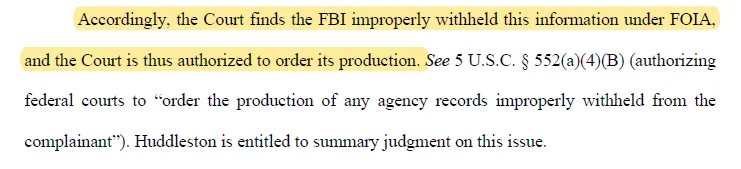 The court rejected that argument, stating “the FBI has not satisfied its burden of showing more than a de minimis privacy interest that would justify withholding information from Seth Rich’s laptop.”