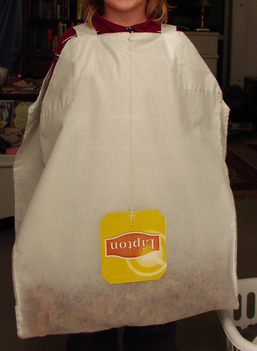 The night of the party, the basement was appropriately filled with cobwebs and flickering lights, hands crawling out from under the chairs and a cauldron in the corner with dry ice creating a little swirling mist.  Our guests did not disappoint with their costumes! One of my cousins was a Lipton tea bag…