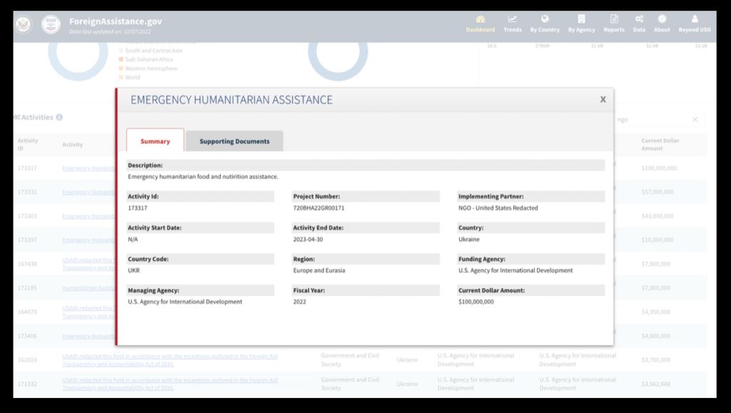 U.S. Government Database Redacts Names Of Non-Profits Receiving Over $250 Million In Taxpayer-Funded Ukraine ‘Aid.’