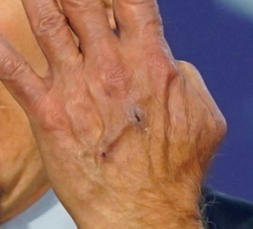 I wonder why PedoJoe’s Aduhelm would be delivered through a very visible vein on the back of his hand when it could just as easily be deliver through very accessible veins on the top of his wrists where the marks can be easily covered by the cuff of a shirt?