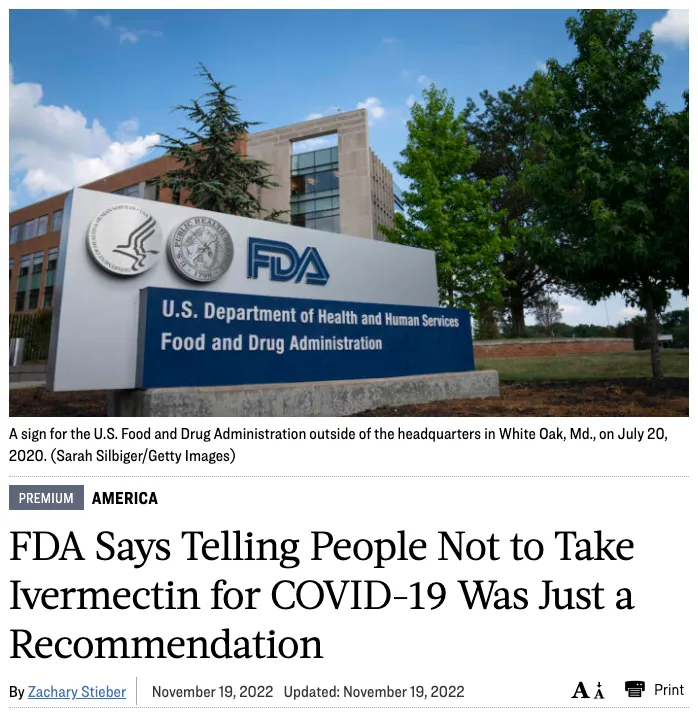 “In Court FDA NOW Says Telling People Not to Take Ivermectin for COVID-19 Was “Just a Recommendation” [killJAB] — We are in the “rewriting history to save your ass” segment of this genocide.”