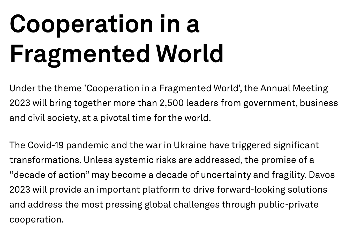 “Keeping up with the WEF — Davos 2023 in Jan: “Cooperation in a Fragmented World”