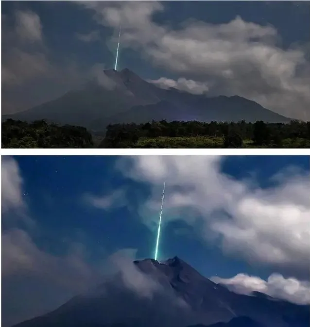 Amazing fireball plunges into Merapi volcano in Indonesia…