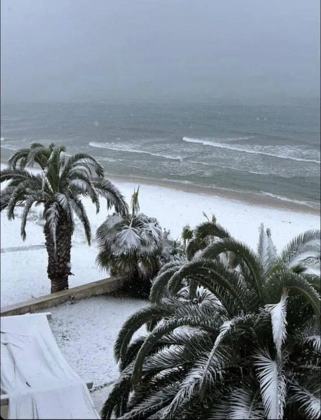 Snow on the beach in Greece…