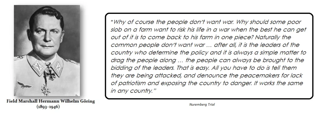 That’s actually pretty easy. Do what’s always worked. Do what Nazi’s did to get average god-fearing educated Germans to fight: