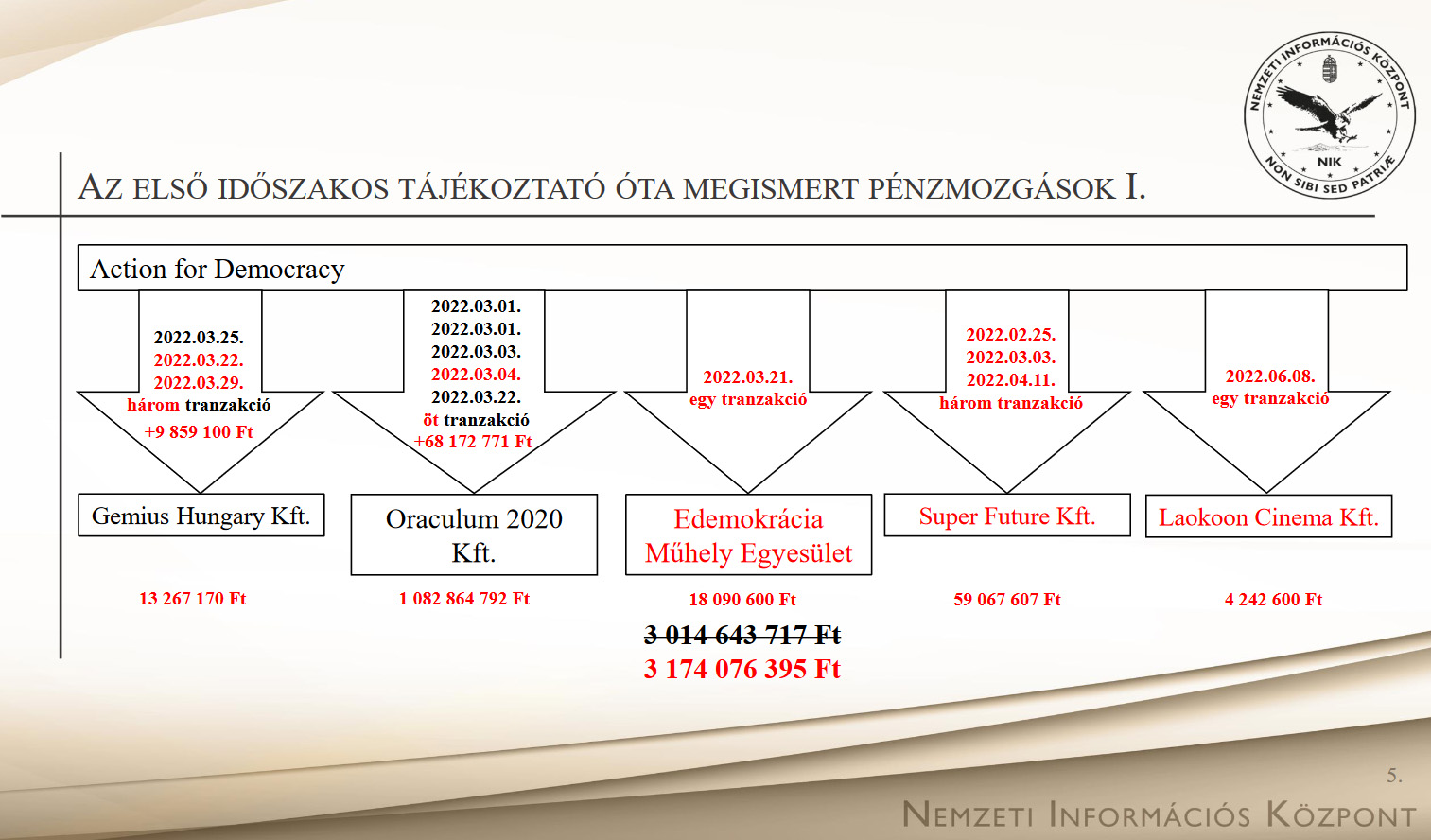 The report concluded that during the 2022 election campaign, the U.S.-based group Action for Democracy sponsored the Hungarian political movement “Mindenki Magyarországa.” The organization was acting as a front for Hungarian opposition parties and an NGO, which received a total of over 3 billion forints (€8.4 million) from Western sources.
