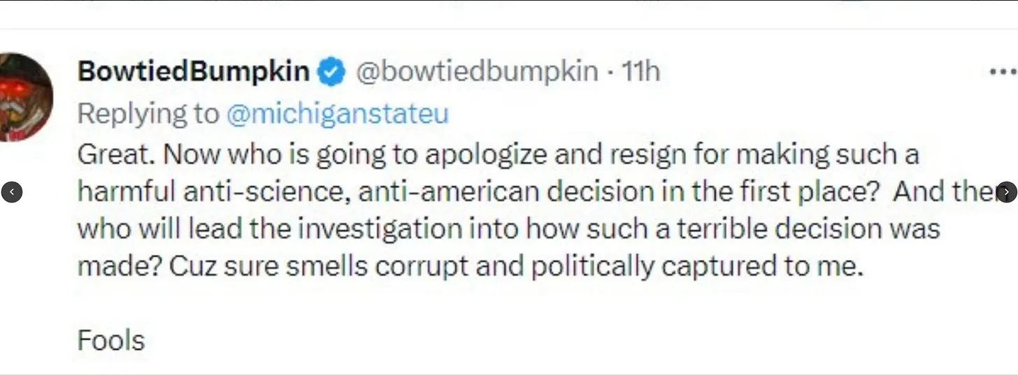 ENTIRE ARTICLE: “PERHAPS THIS IS WHY MSU GENERATES MORE FULBRIGHT SCHOLARS THAN ANY OTHER UNIVERSITY ON EARTH — When they’re wrong, they change course, eventually, instead of doubling down like their ultra leftist competition
