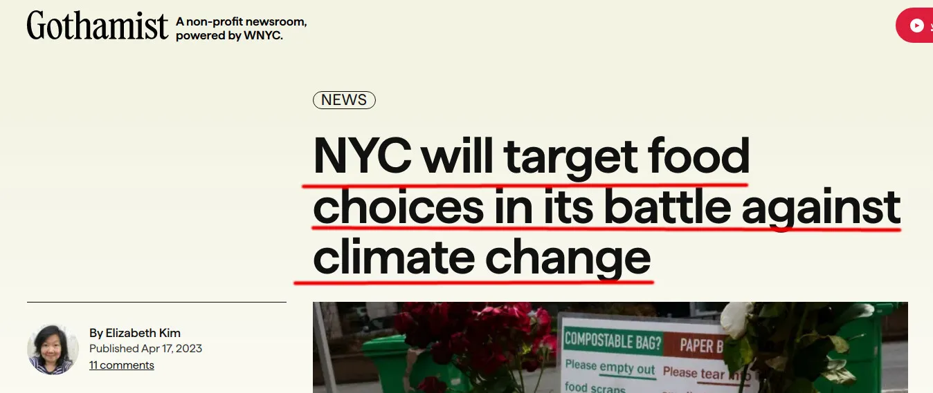Yesterday, New York City announced its plan to track the “food choices” of New Yorkers using credit card data from individual store purchases. According to the mayor, tracking individual food choices is a step towards “reducing the CO2 output” of New Yorkers.