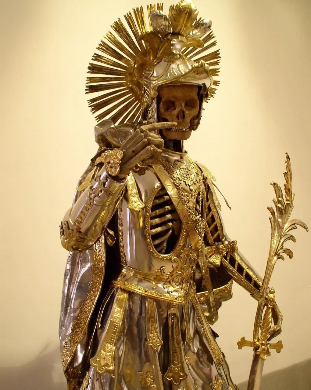 “St. Pancratius skeleton in armour. Church of St. Nikolaus, Switzerland. 16-19th century…Pancras was a Roman citizen who converted to Christianity and was beheaded for his faith at the age of fourteen, around the year 304. His name is Greek and means “the one that holds everything”…