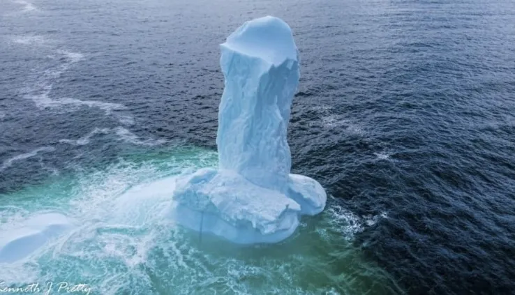 “Last Thursday, April 27th, Ken Pretty from Canada photographed a quite unusual iceberg off the coast of Newfoundland, in an area called CONCEPTION BAY. Social Media has dubbed it the DICKIE BERG (Dickie Bird is a Newfoundland euphemism for the male anatomy). And to top it off, Ken is from a town in Newfoundland called DILDO. But no need to go rushing to see this unusual iceberg. Unfortunately, the tip has fallen off… Pretty amazing coincidences no?”