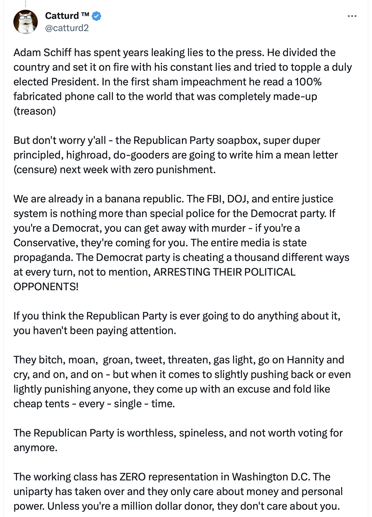 So much of modern political life consists of the ruling class tricking the public into trading away things the ruling class values in exchange for things the ruling class does not value. Trading revolution for the feeling of being revolutionary. Trading actual freedom and democracy for the story of having freedom and democracy. Trading away the civil rights our rulers actually care about like unrestricted speech and freedom from surveillance in exchange for culture wars about racism and transphobia. Trading real labor for imaginary money. In every way possible we’re being duped into trading away real power for empty narrative fluff.