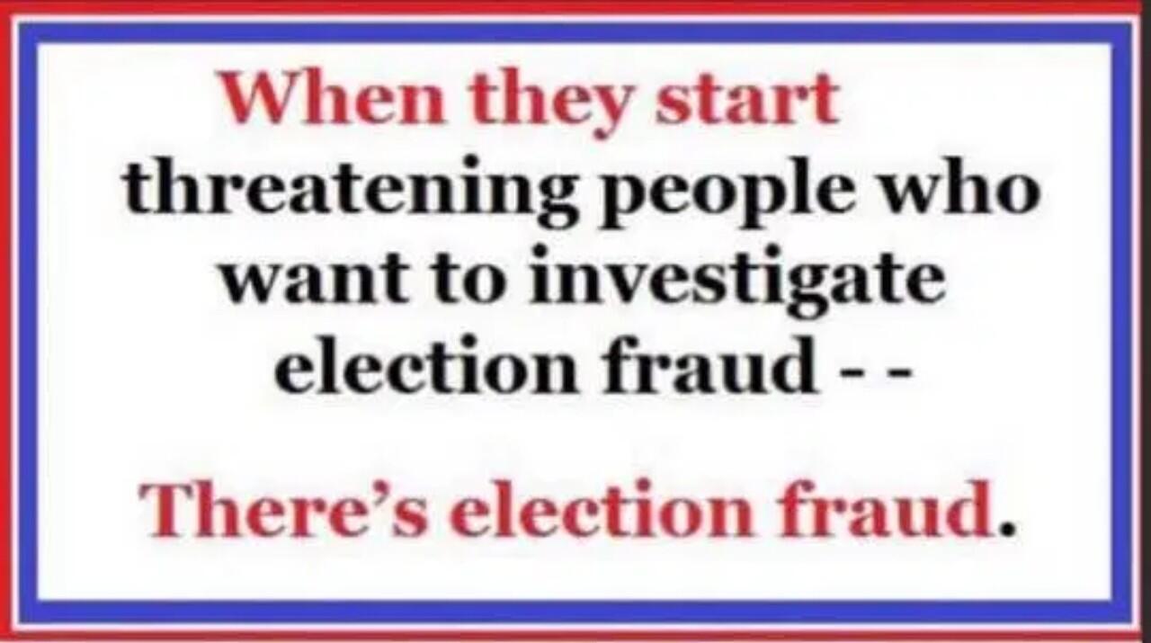 If the fraud is not addressed and fixed, we will absolutely never have an honest election again and any faint remnant of legitimacy is gone. This Republic will be history!