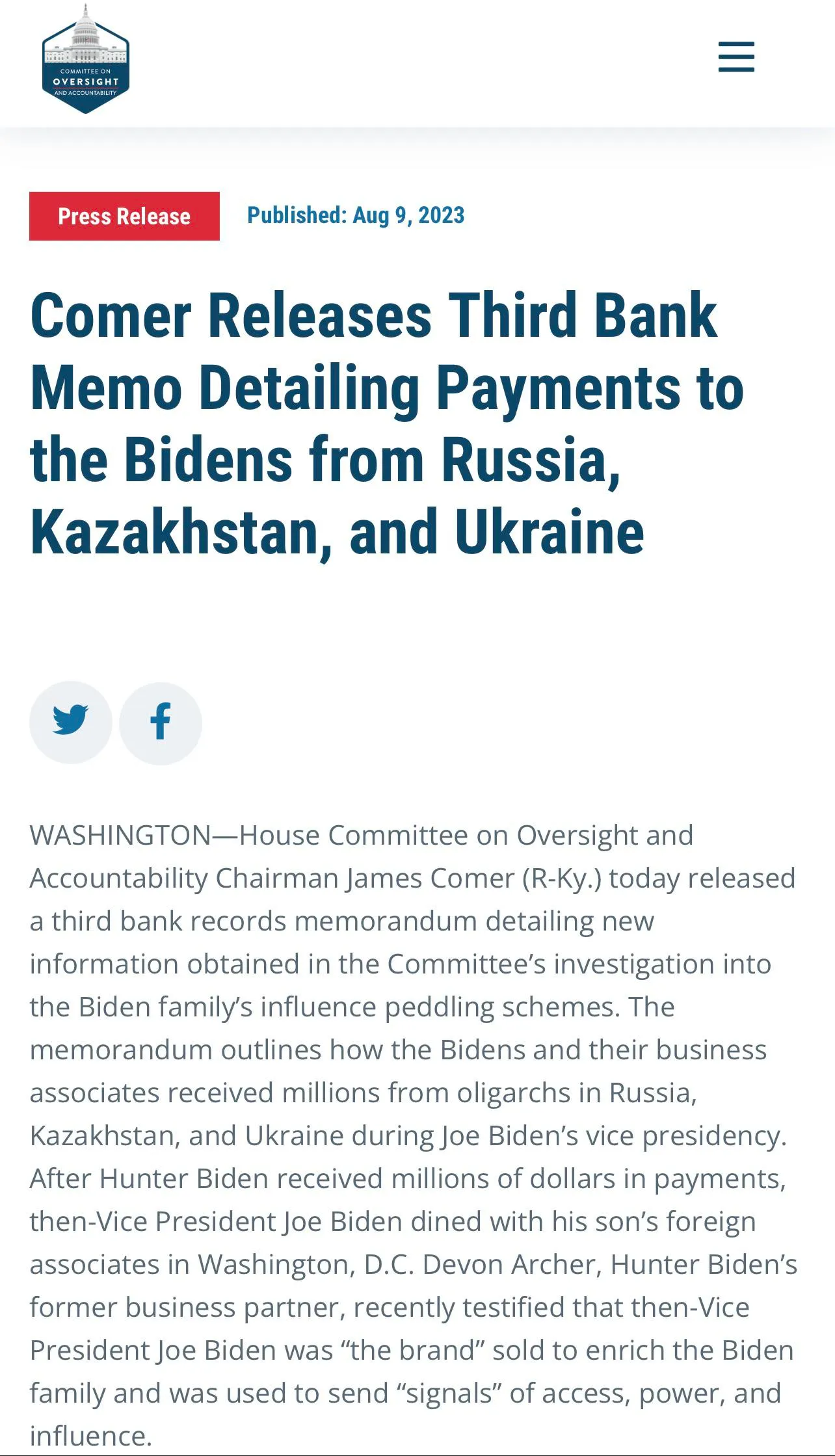“The Biden Family corruption saga continues in the headlines today. Just the News published a great article, “Silk Road Paved with Cash: Court records confirm millions flowed to Biden family from China,” that ties into Hunter Biden’s plea deal, and it lays out several important facts. I want to focus on one of the paragraphs from the plea deal: