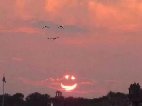 Odd line-up of birds and sun…