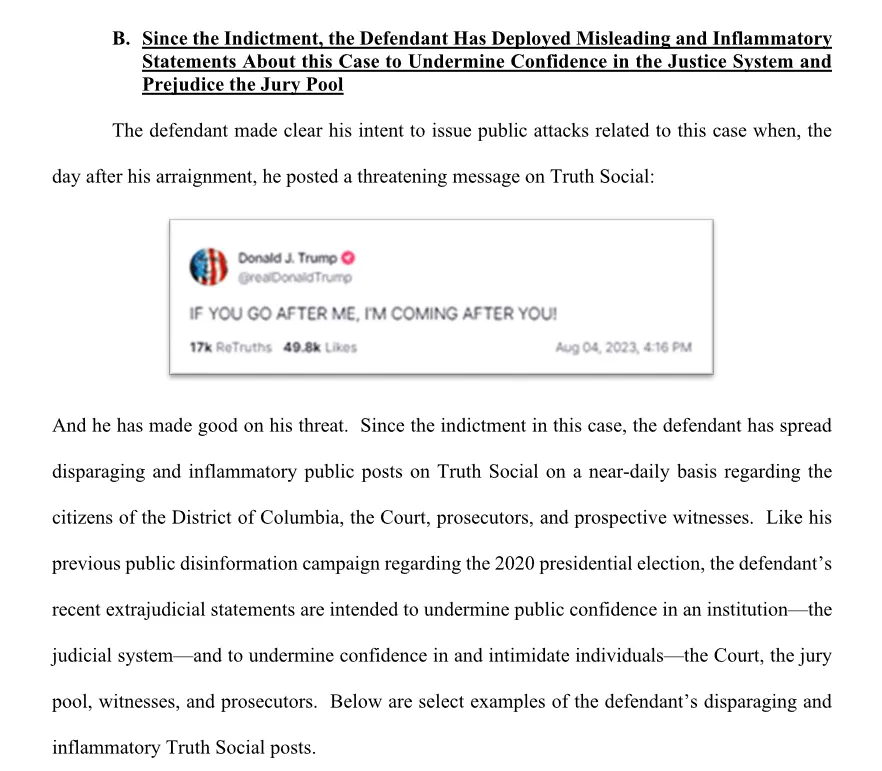 A preposterous, desperate, and wholly dishonest argument. But Smith really jumped the shark last week in a 19-page motion seeking a gag order on the leading GOP presidential contender. Citing numerous Truth Social posts, Smith accused Trump of attempting to poison the jury pool and intimidate potential witnesses in the January 6 case. From the motion: