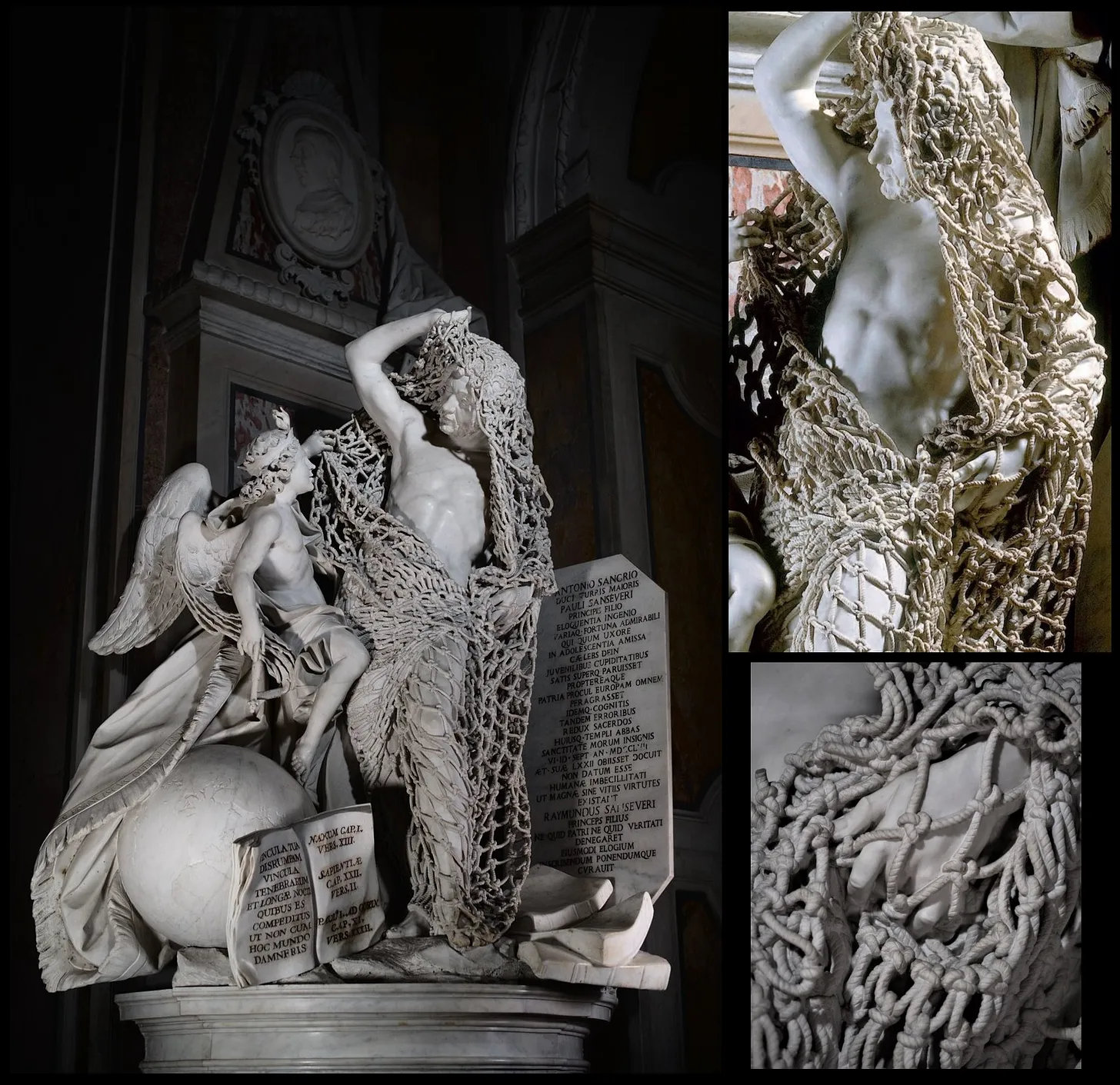 “This 18th century sculpture called Disillusion, which includes an intricate net carved from a single block of marble, was created by Francesco Queirolo without assistance, since no apprentice would touch it for fear of the delicate net crumbling in their hands. It took him seven years…”