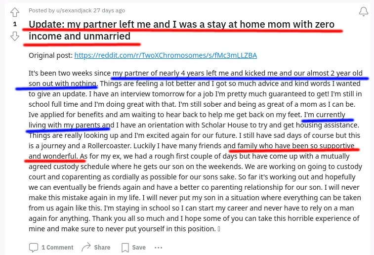 And who is she living with??? HER PARENTS!!! [NF: I’m not seeing any indication that this is her birth father that she’s living with – she has never made any mention of him.]