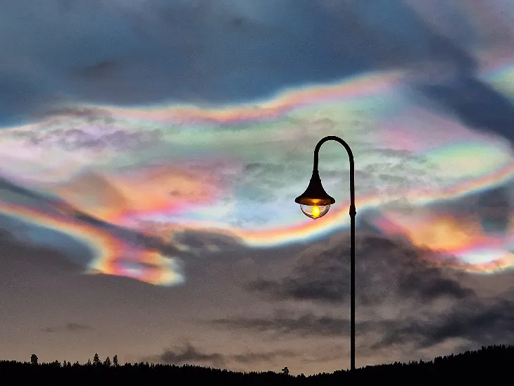 Widely considered to be the most beautiful clouds on Earth, polar stratospheric clouds (PSCs) are rare. Earth’s stratosphere is very dry and, normally, it has no clouds at all. PSCs form when the temperature in the Arctic stratosphere drops to a staggeringly-low -85 C. Then, and only then, can widely-spaced water molecules begin to coalesce into tiny ice crystals. High-altitude sunlight shining through the crystals creates intense iridescent colors that rival auroras.