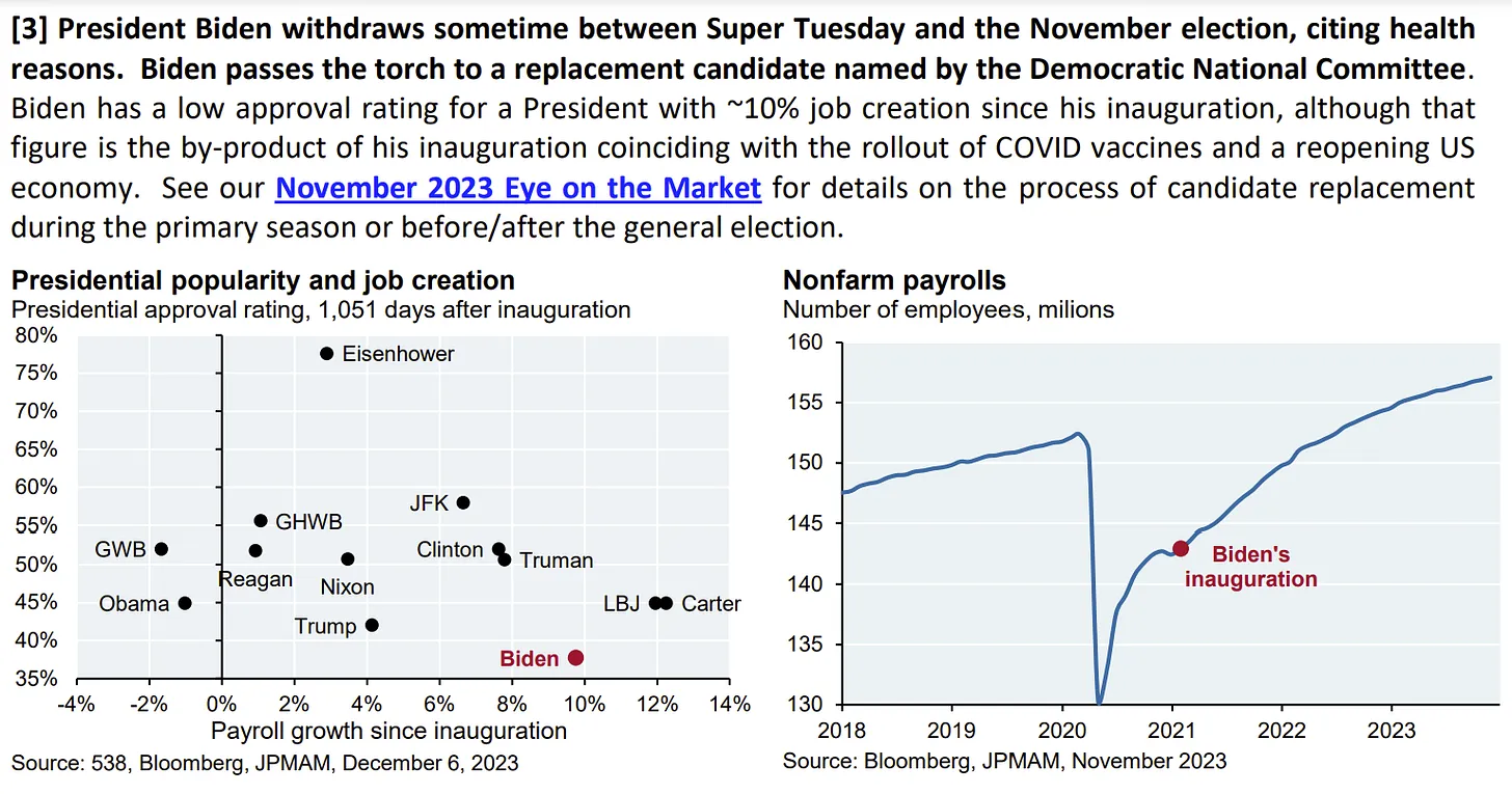 “JPMorgan’s 10 shockers for 2024: Biden will pull out of presidential race over poor health, rolling blackouts will hit cities and driverless cars boycotted…”