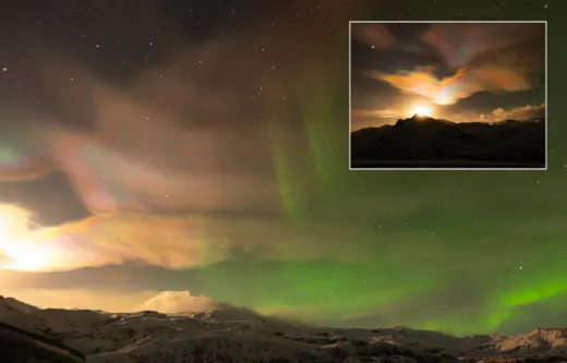 Polar stratospheric clouds even brighter than auroras over Iceland