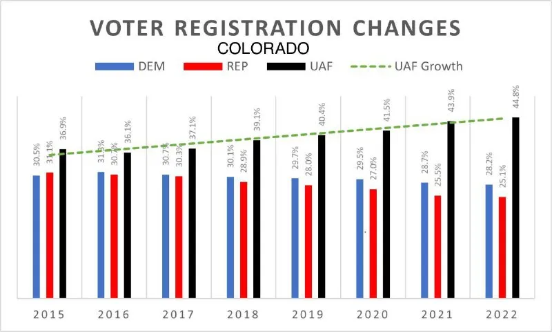 One other factor in Colorado that may be driving an increase in UAF is our Open Primaries. By switching to UAF, voters can vote in either primary which, as we saw in 2022, can heavily impact Republican candidate selection. This is not an issue in PA yet, but the commies are actively trying to change that. Caution, PA!