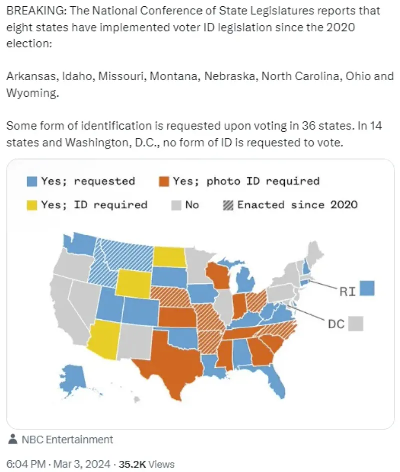 Did you know that the courts keep blocking any and every state effort to verify the citizenship of voters on the grounds that Congress must change the federal form? Now that we have 10M+ brand new Biden illegals living here, many of them criminals, it is hard to imagine a more vital priority for Congress than requiring proof of citizenship to vote in federal elections.