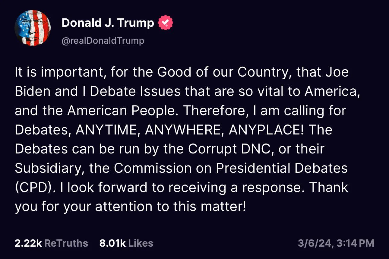 The following is a verbatim statement from Trump: