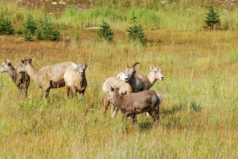 Mature males spend most of their year in bachelor flocks apart from groups of females and young sheep. Young females generally remain in their mother’s group (led by an older ewe) for life. All ewes are subordinate to even young rams with bigger horns.