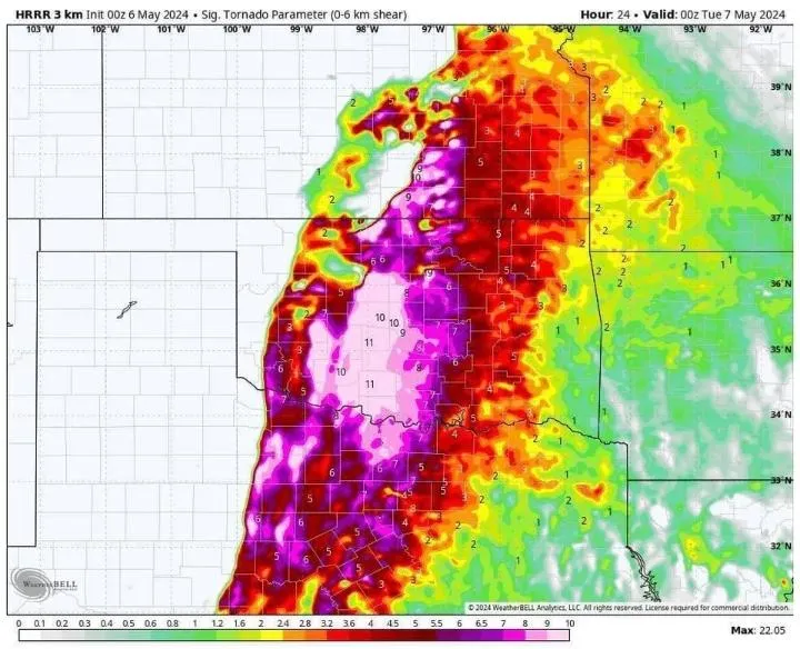 “Tornado category for Oklahoma is showing a max 10 out of 10. This predicted system will hit in the next few hours…”