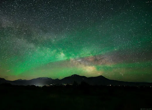 “On May 28th, a band of green light crossed the Milky Way over rural Paonia, Colorado. This was no northern lights but a sky/space phenomenon called airglow:”