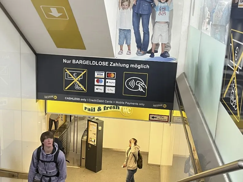 “By the way, you can’t use the bathroom without a credit/debit card at Munich Central train station…”