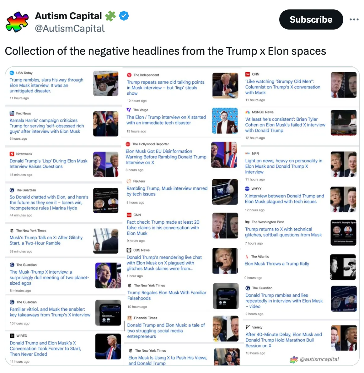 I would L♥️VE a list of good reviews of their conversation – that use words like ‘relaxed’ and ‘fascinating look into brilliant minds’ of Trump and Musk