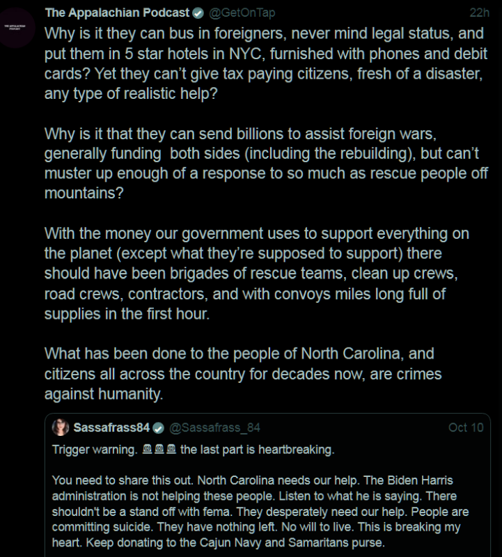 on the other hand, millions in the hurricane disaster are able to connect with loved ones because of free starlink–which he is generously allowing to continue free of charge till the end of the year. i am not saying everything he does is brilliant–I am wary too.