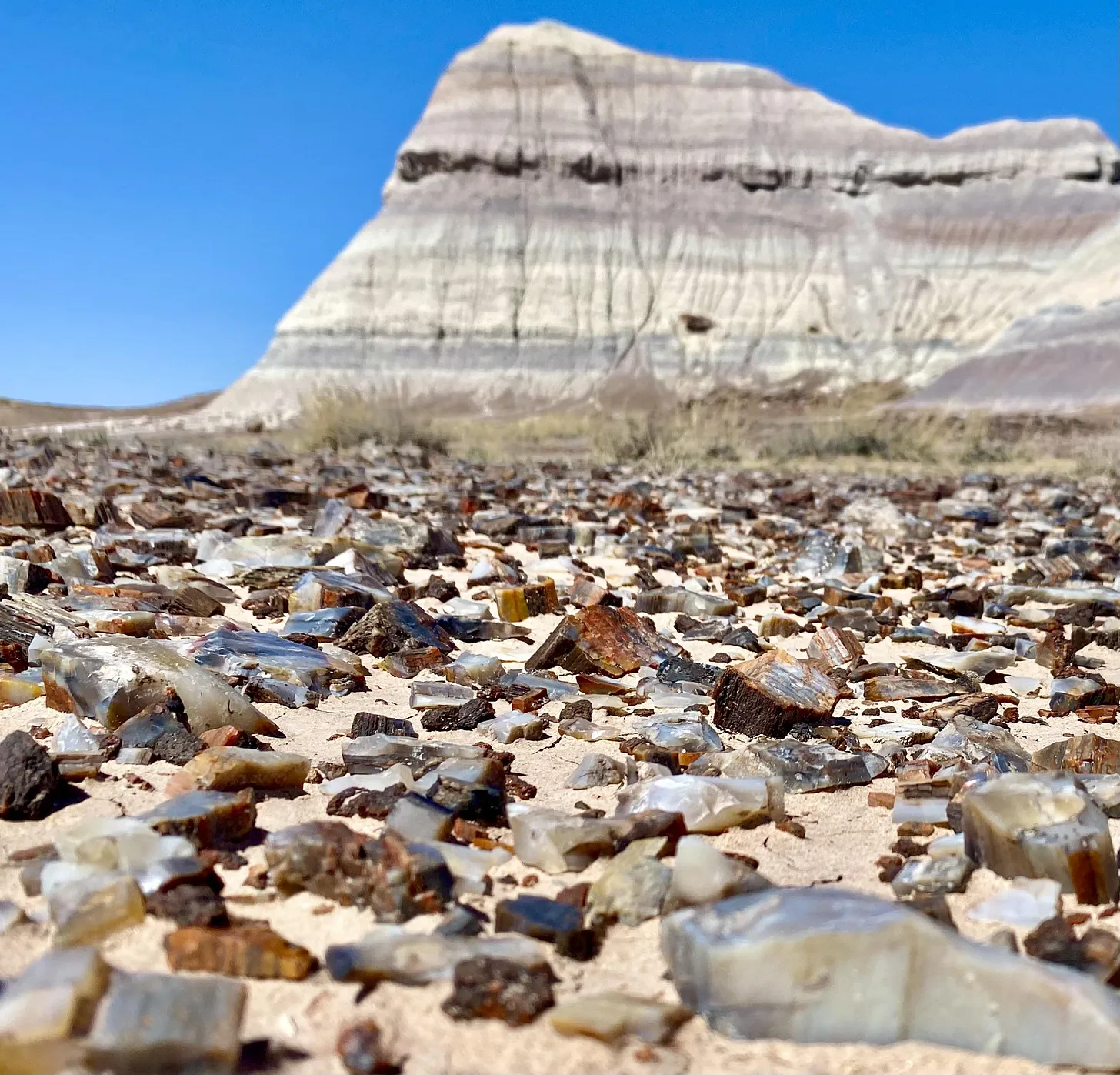 “A field of 200+ million year old petrified wood fragments in Arizona…”