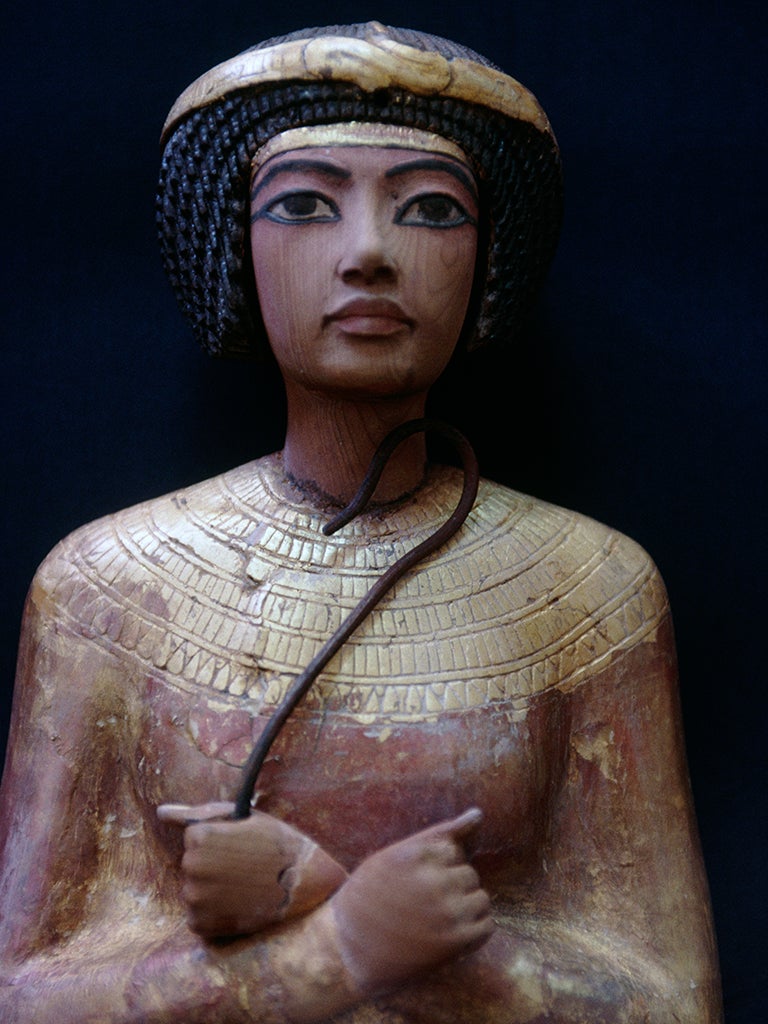 Inside a small wooden chest made from ebony and cedar, Carter and his team found a gold-plated leopard head, and a gorgeous pair of ceremonial objects known as the pharaoh’s crook and flail, always depicted as held across his chest. But alongside these priceless items was something conspicuously commonplace—a knotted up linen scarf.