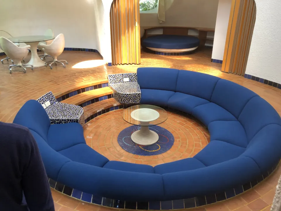 Inside, there’s a groovy conversation pit, and not a straight line to be found. Photographer: David Dudley/Bloomberg
