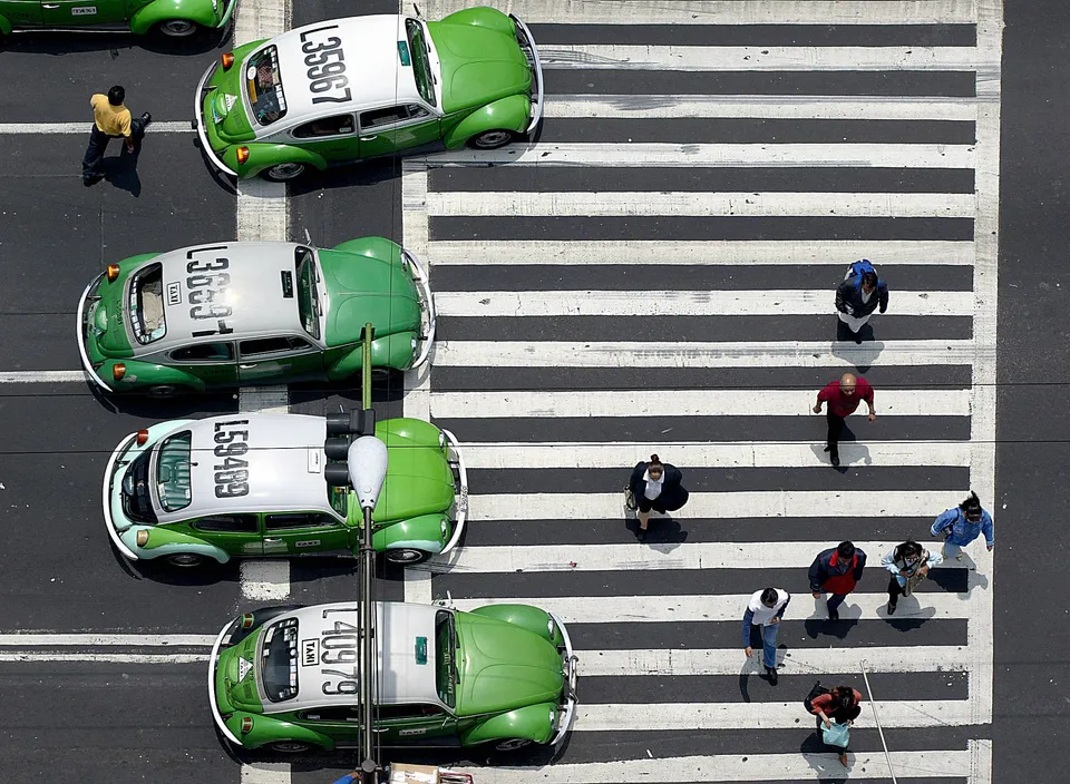 Beetle taxis circulate in Mexico City in 2003. Photographer: Jorge Uzon/AFP via Getty Images
