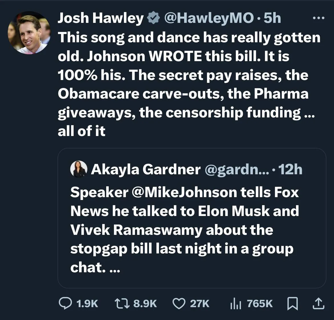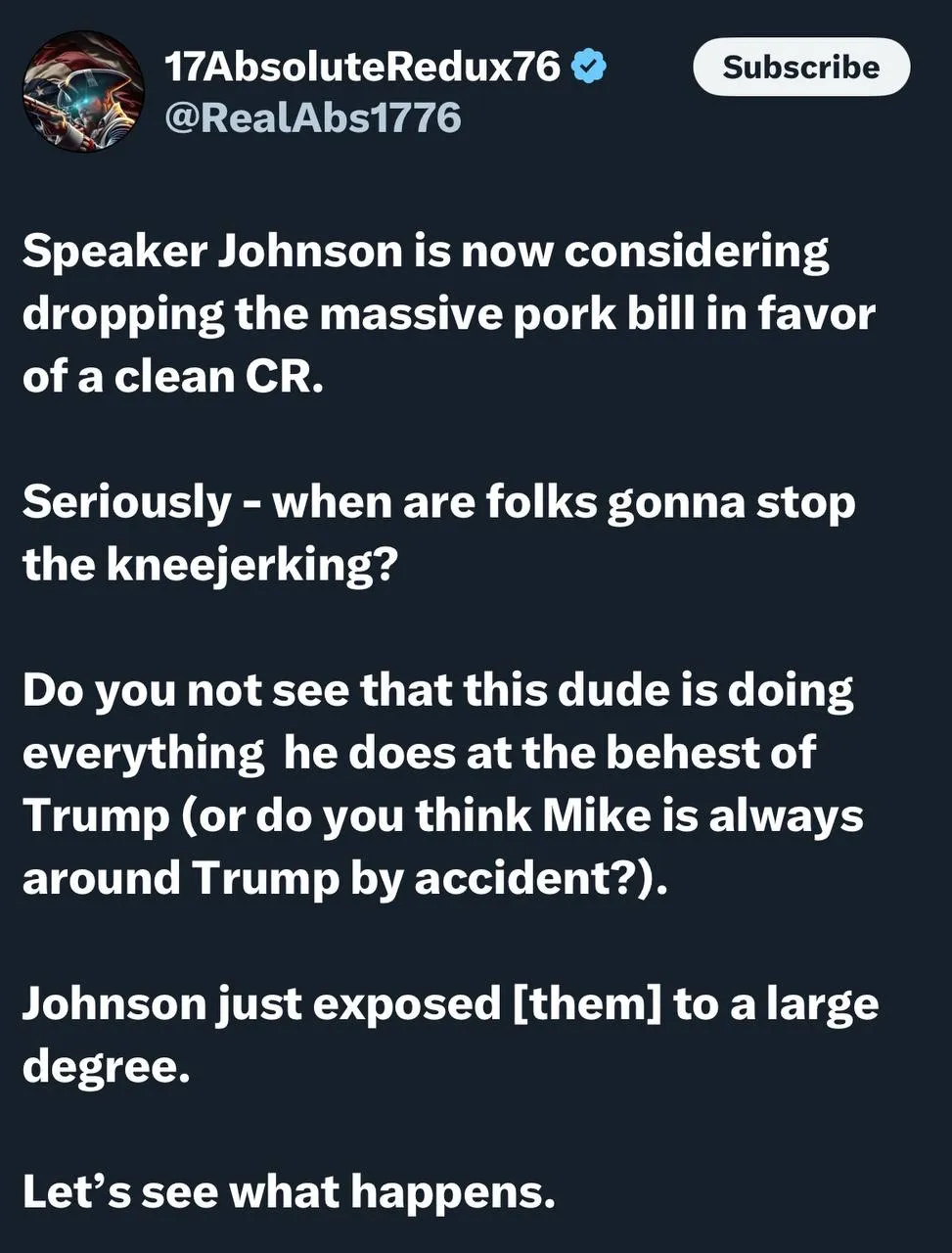 At this point, it’s clear: Speaker Johnson needs a spine. Perhaps there’s enough money in the CR for him to get one.”