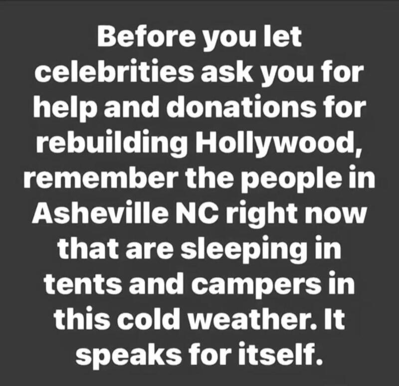 those celebs can get hotel rooms with the finest amenities. NC cannot. no handouts.