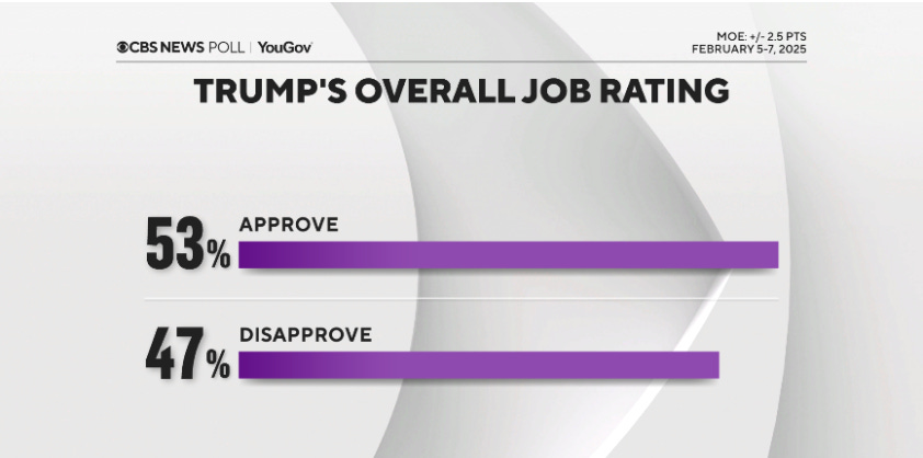 Now, you can make arguments about the accuracy and integrity of the polls then and now, but regardless, optics are optics, and despite all of the drastic shake-ups driving left-wing politicians and social media to hysteria [USAID, Department of Education, etc.], this shows that the majority of the the country is actually in favor of these radical changes.