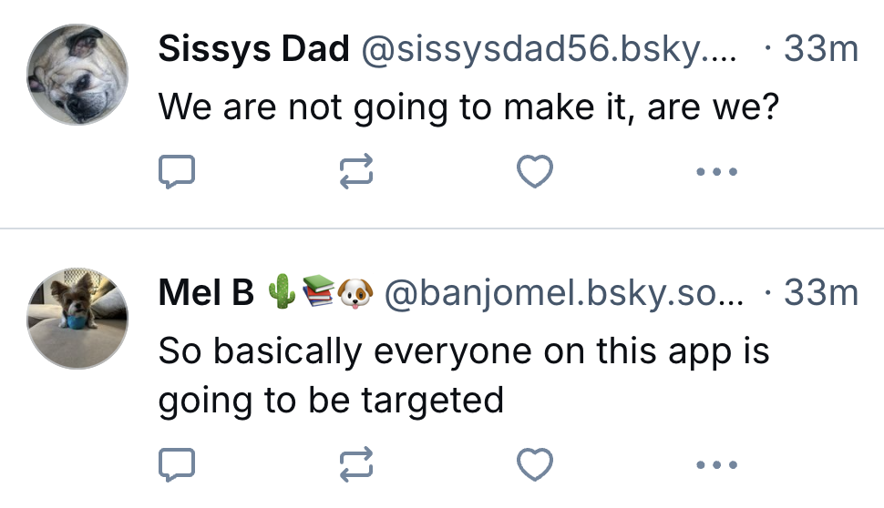 I feel bad for these Bluesky patrons. They’re afraid of boogeymen that don’t exist because liberal politicians and news hosts have been telling them that Trump is literally Hitler for a decade.