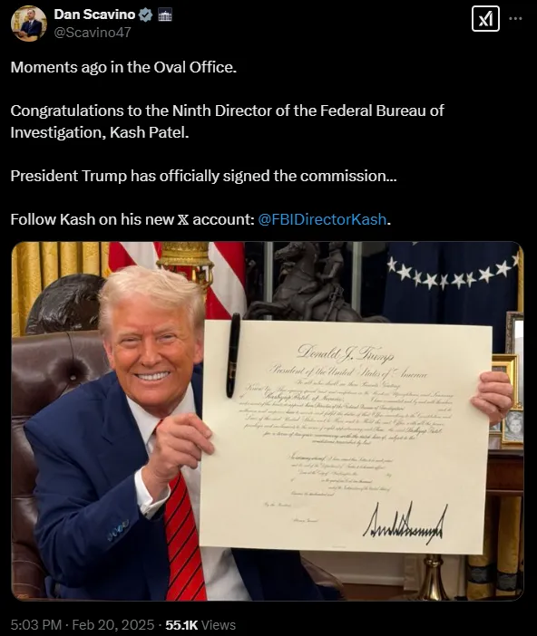 ENTIRE ARTICLE: “Kash Patel was confirmed 51-49 by the US Senate today as the new FBI director … and boy oh boy is the Left having a tough time with it. From a post by liberal commentator Tyler Cohen over on Bluesky: