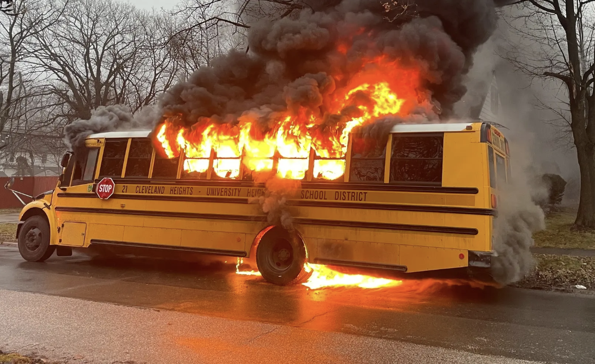 While there was no word on whether a particularly industrious student may have used ingenuity to start the blaze, the district’s superintendent expressed gratitude for the driver’s heroism: