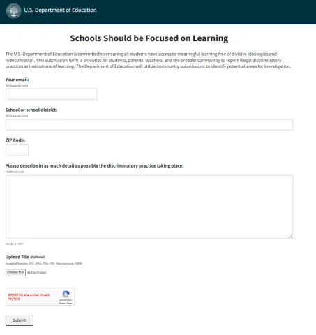 “Trump’s Department of Education launches “End DEI” portal to report DEI discrimination in schools.”